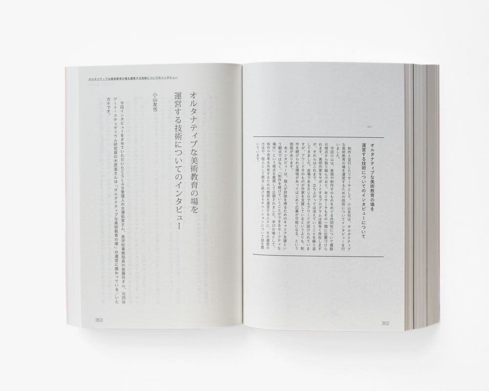 実験的な展覧会の関連書籍。作品解説、批評家による展覧会評のほか、イベント、ワークショップなど多岐に渡る活動全体の記録や対談、アーティストらの日記、エッセイ、小山友也による「オルタナティブな美術教育の現場インタビュー」を収録。